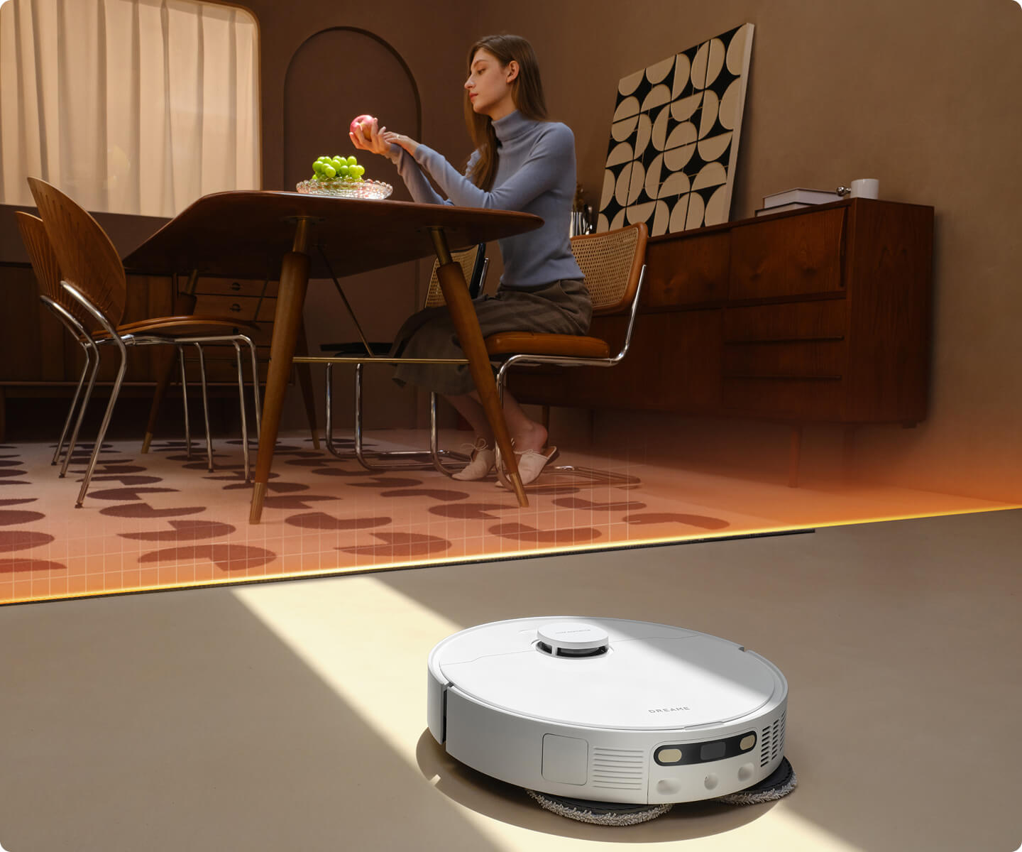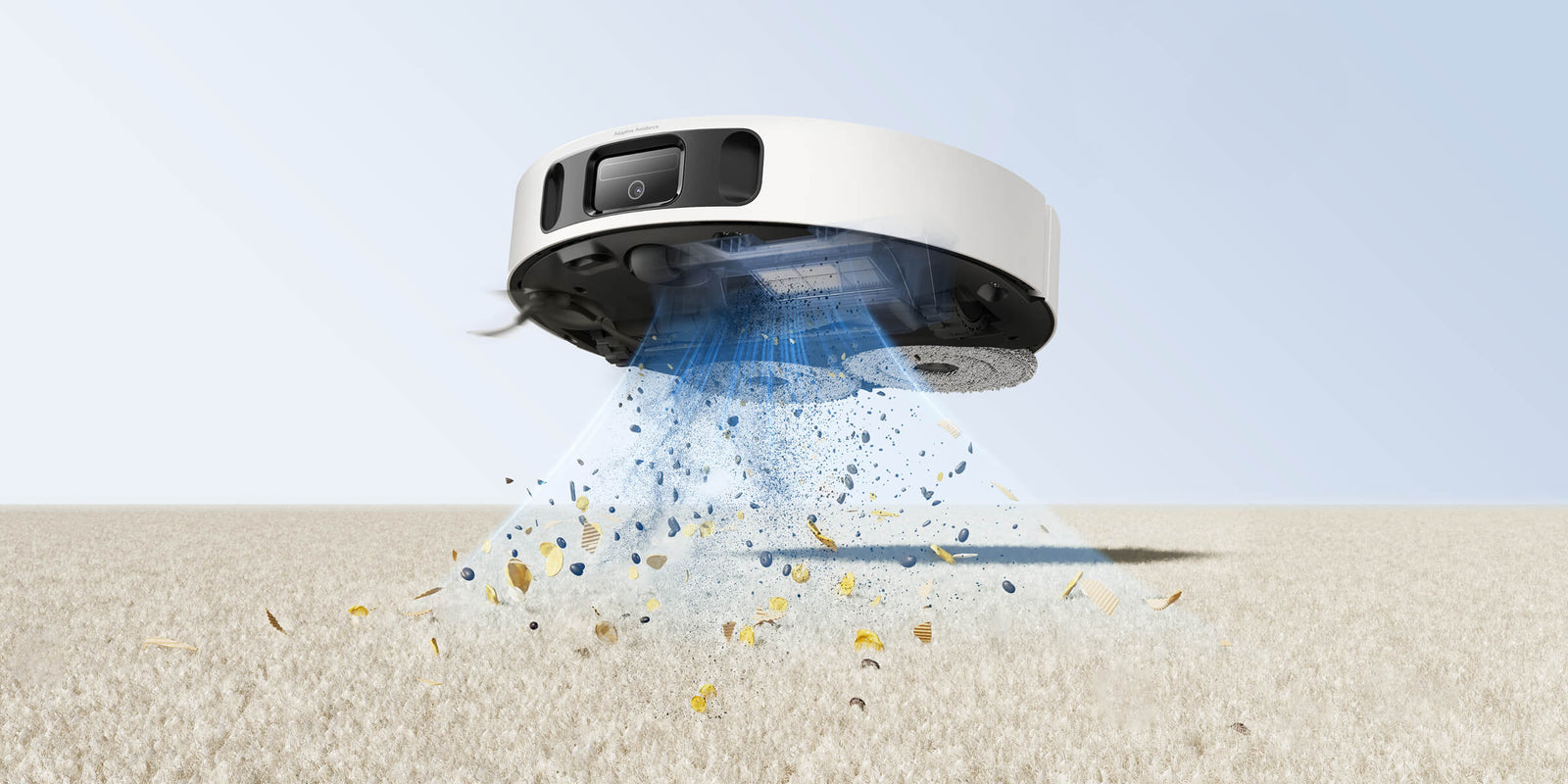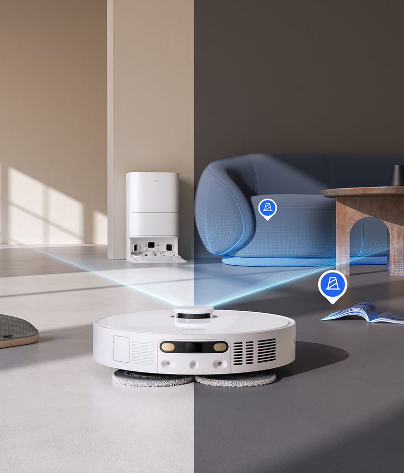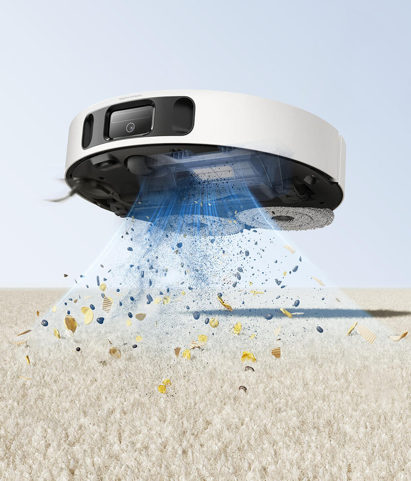 Smarte Teppichreinigung (Mopp-Anhebung um 10,5 mm, Ultraschall-Teppicherkennung, Saugkraftverstärker für Teppichböden)