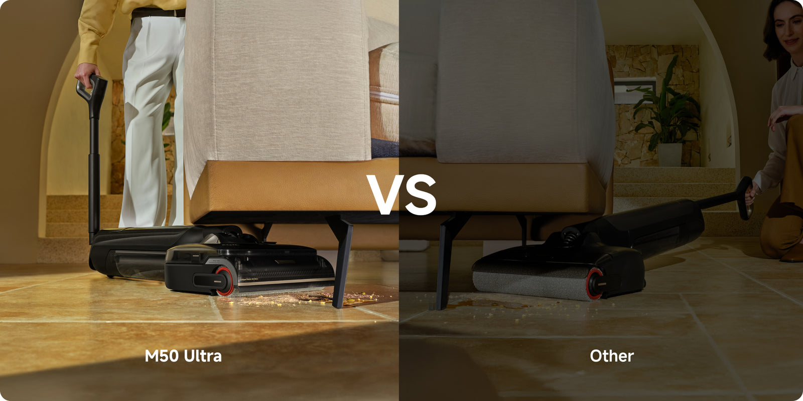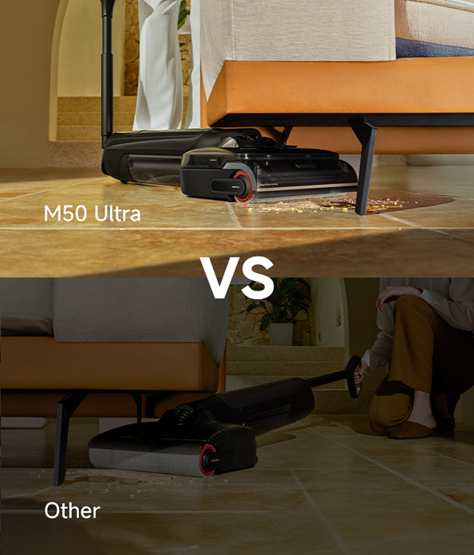 Der M50 Ultra verfügt über eine beeindruckende Saugleistung von 22.000 Pa, die eine Vielzahl von Verschmutzungen mühelos bewältigt – egal ob nass oder trocken, oberflächlich oder tiefliegend. Außerdem übt er etwa 20 N Abwärtsdruck aus, um Ihre Böden zu schrubben und selbst hartnäckigste Flecken effektiv zu entfernen.