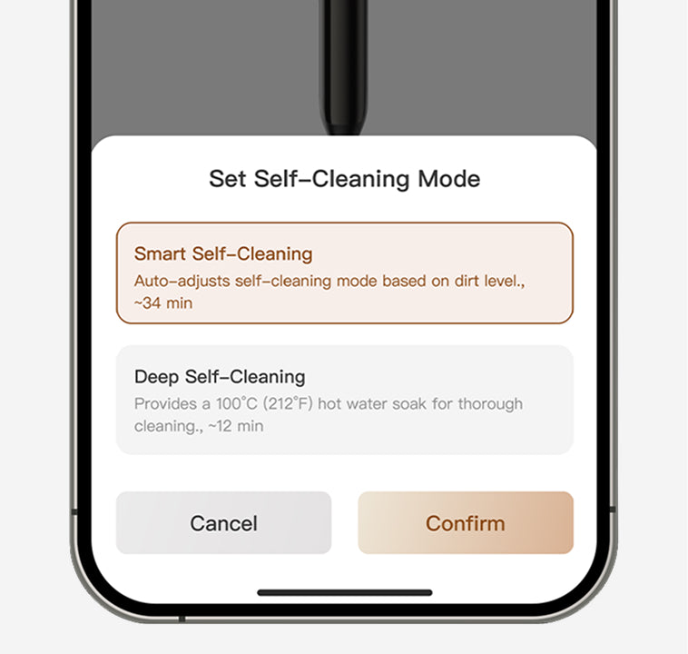 Wählen Sie die Selbstreinigungsmodi aus, legen Sie einen Termin für die Selbstreinigung aus und überwachen Sie den Fortschritt in Echtzeit.