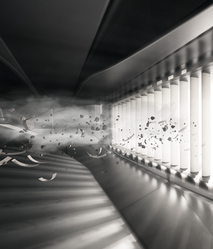 *100 % Reinigungseffizienz von großen Partikel: Basierend auf Daten aus unserem internen Labor.