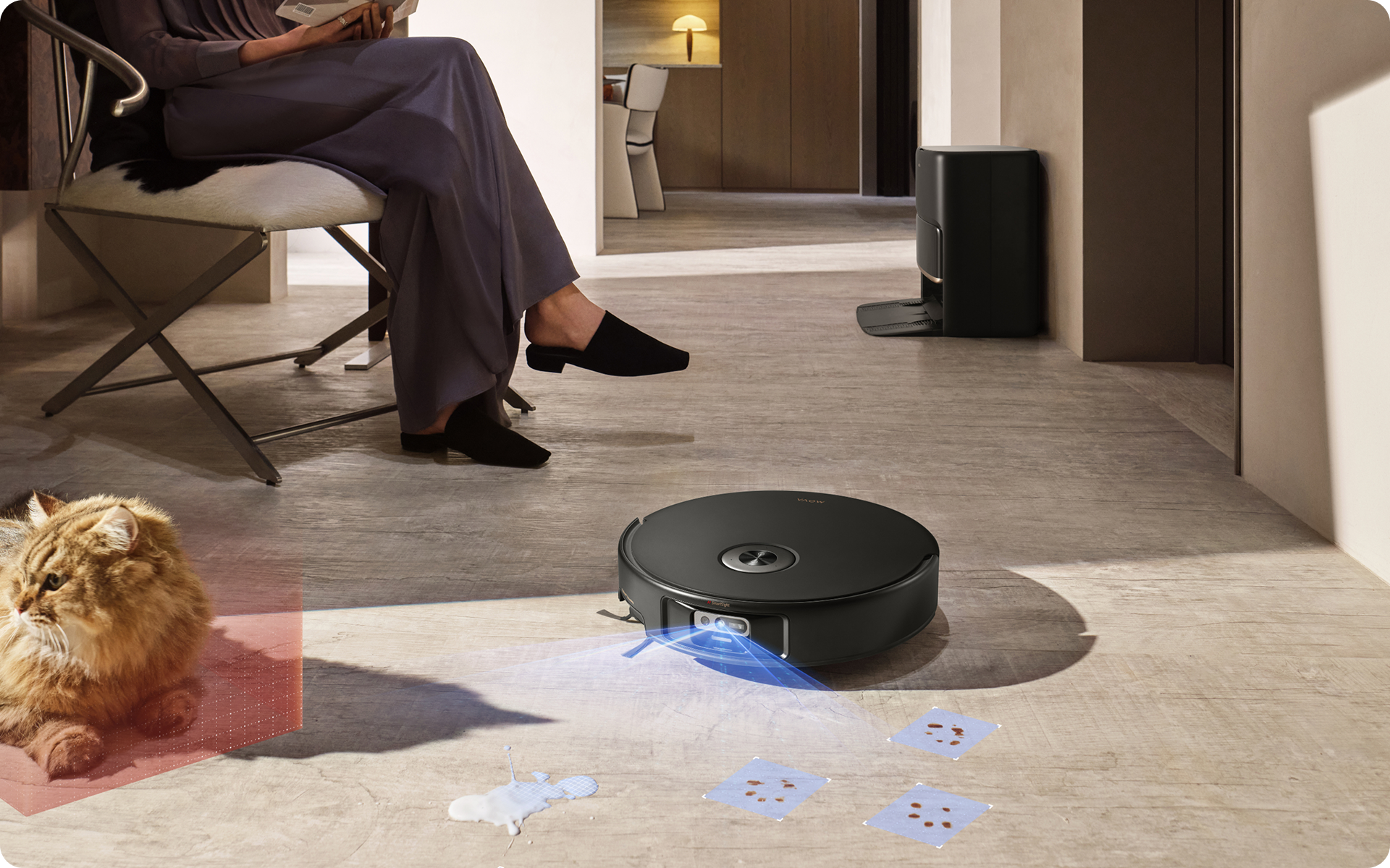 Verabschieden Sie sich von umständlichen Arbeitsabläufen dank einer vollständig automatisierten Reinigungsroutine: Automatisches Nachfüllen von Wasser, automatisches Nachfüllen der Reinigungslösung, automatische Heißlufttrocknung des Wischmopps und automatisches Wischmopp-Waschen mit 80 °C heißem Wasser. Genießen Sie ein saubereres Zuhause, ohne einen Finger zu rühren.