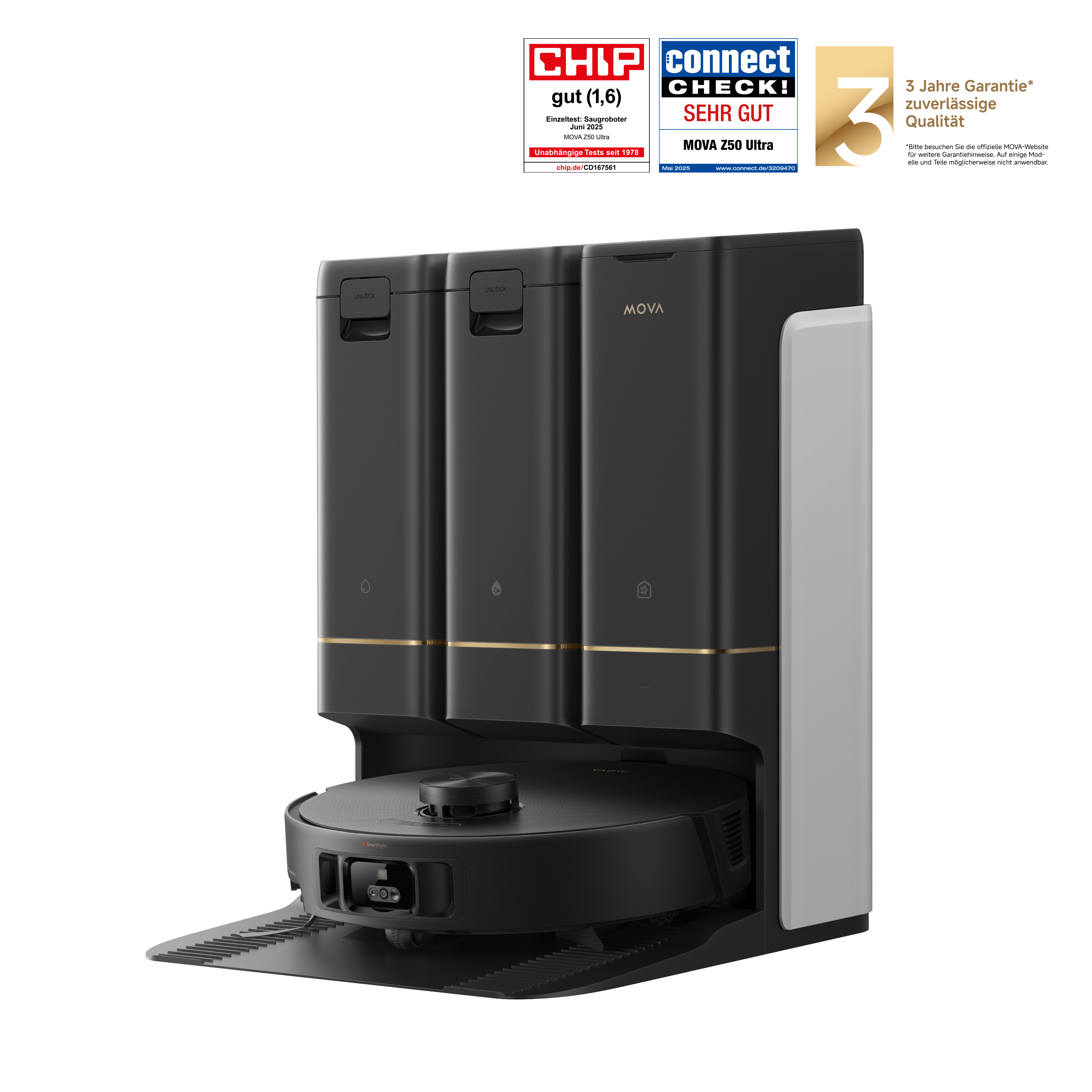 5. *"Bevorzugte Lösung“ verweist darauf, dass die Reinigungslösung von MOVA effizienter und besser für die angegebenen Szenarien geeignet ist. Dies bedeutet nicht, dass MOVA die beste auf dem Markt erhältliche Lösung ist. Die tatsächliche Leistung kann abhängig von Faktoren wie der Umgebung und den Nutzungsbedingungen variieren.