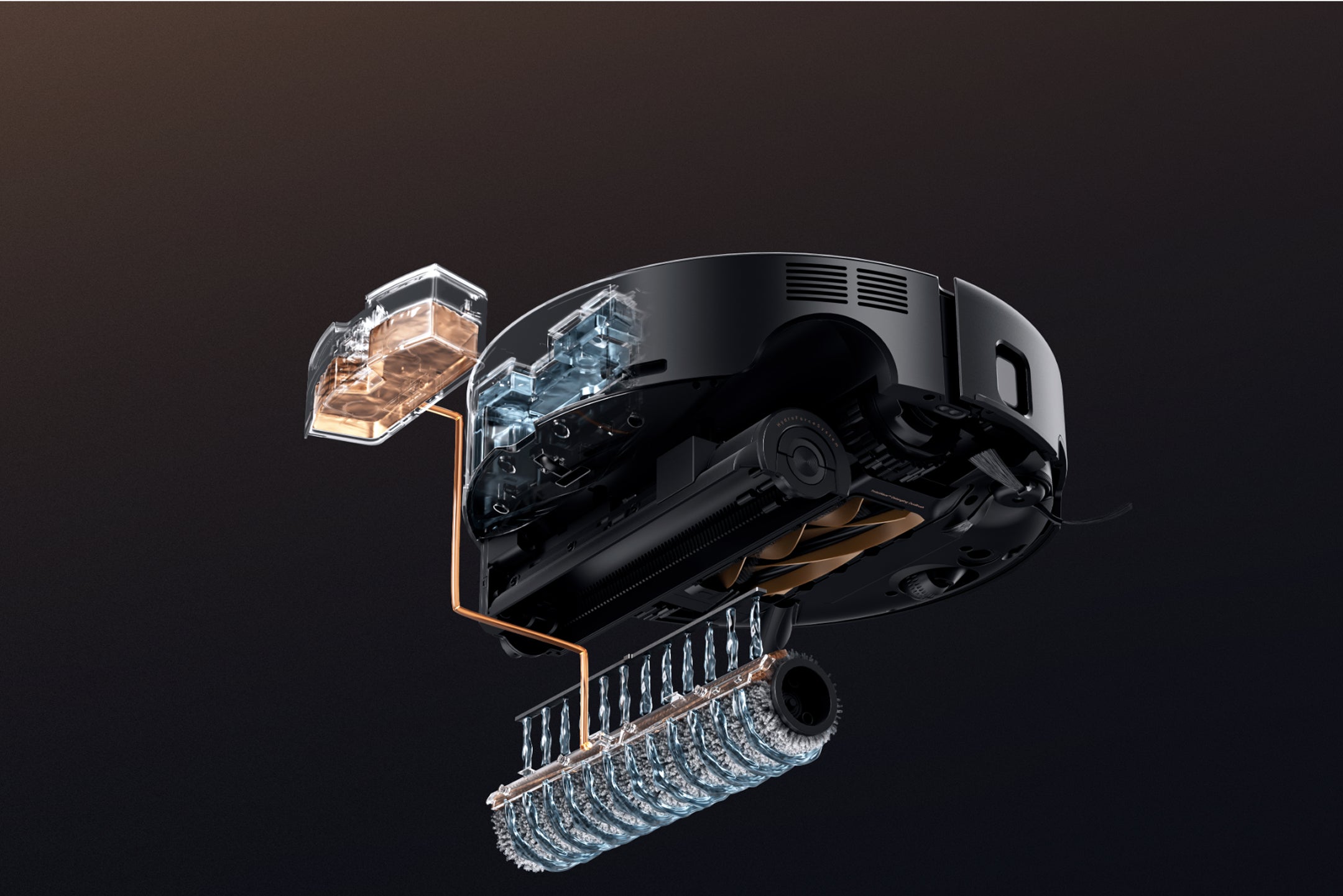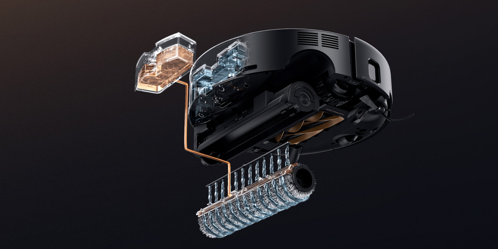 99 %: Basierend auf unserem internen Labor. Die tatsächlichen Ergebnisse können je nach Umgebungsfaktoren variieren. Im Standard-Wischmodus wurde eine Aufnahmerate von Haaren von 99 % erreicht (0,3 g mittellange Haare auf einer Fliese von 1500 x 2000 mm). Die Effizienz wurde durch den Vergleich des Gewichts des Staubbehälters vor/nach einem einzelnen Reinigungsdurchgang berechnet, wobei die Verhedderung von Haaren ebenfalls geprüft wurde.